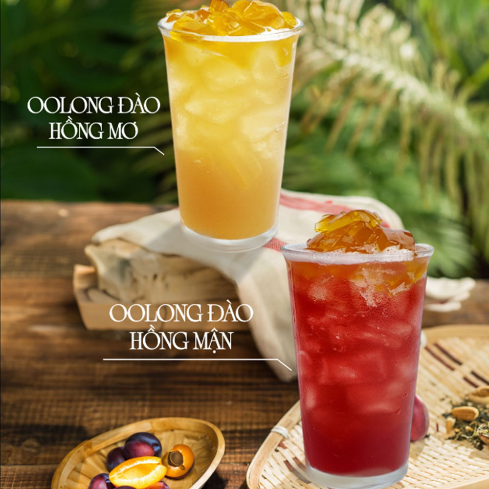 Những ai yêu thích trà trái cây có thể thưởng thức các lựa chọn như Oolong đào hồng mơ, Oolong đào hồng mận, trà lục long ngọc trai, trà Oolong vải lài, trà táo xanh dưa lưới, trà Oolong sen, trà đào. Ngoài ra, menu còn có socola đá xay, matcha đá xay, sinh tố dâu, sinh tố việt quất, chanh đá xay giúp giải nhiệt và thư giãn.