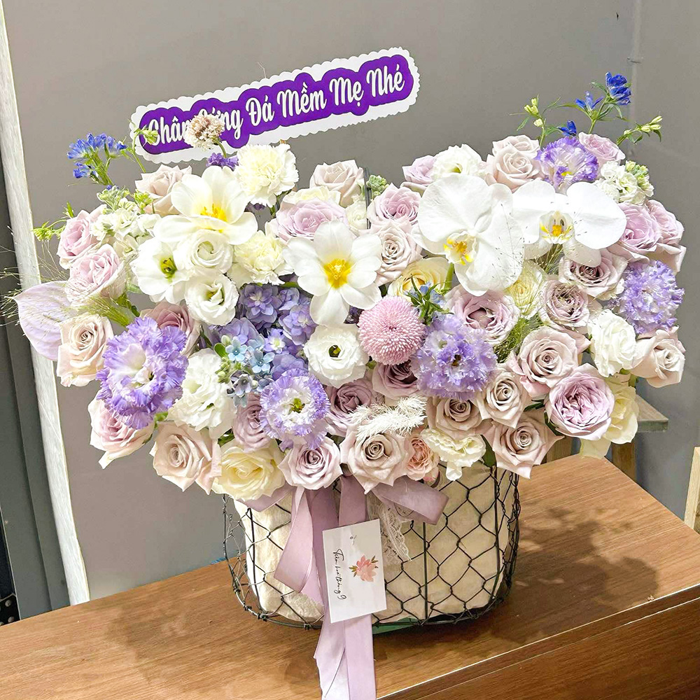 Phù hợp với dịp khai trương, mừng thọ, tân gia, tốt nghiệp. Hoa được sắp xếp tỉ mỉ trong giỏ, hộp cao cấp, kết hợp thiệp viết tay, tăng thêm phần ý nghĩa.